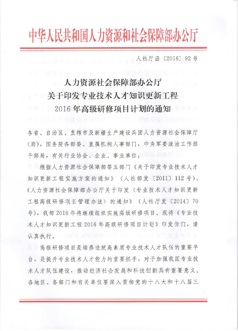 1.专业技术 1.人才知识更新工程2016年高级研修项目计划