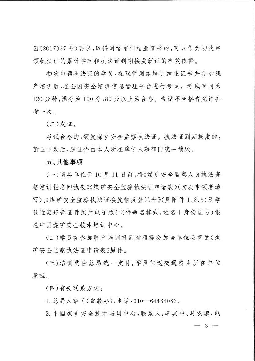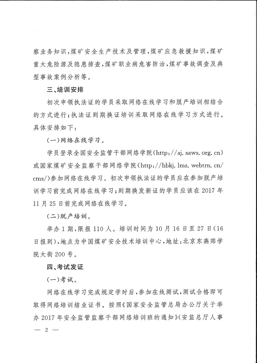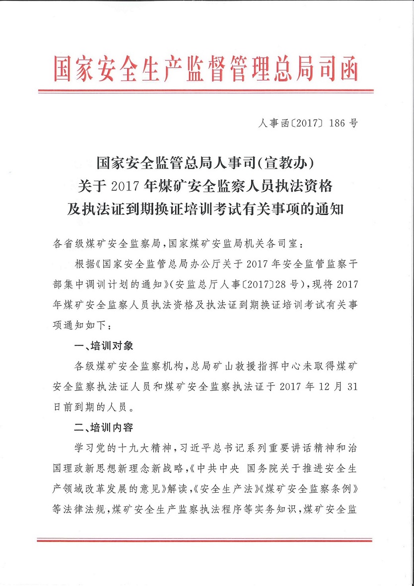 关于2017年煤矿安全监察人员执法资格及执法证到期换证培训考试有关事项的通知